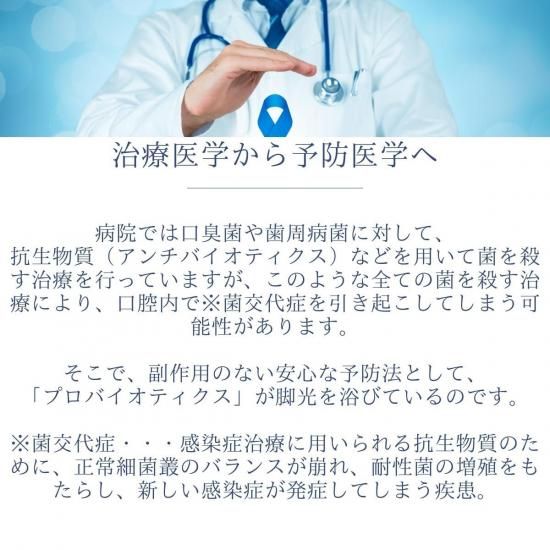 そこで注目されているのが、副作用の心配がない安心の予防法「プロバイオティクス」です。プロバイオティクスとは、乳酸菌などの有益な菌を摂取することで、口内の善玉菌を優勢にし、自ら健やかな環境を保つという考え方。悪玉菌をただ殺すのではなく、口内フローラを理想的なバランスへと導きます。